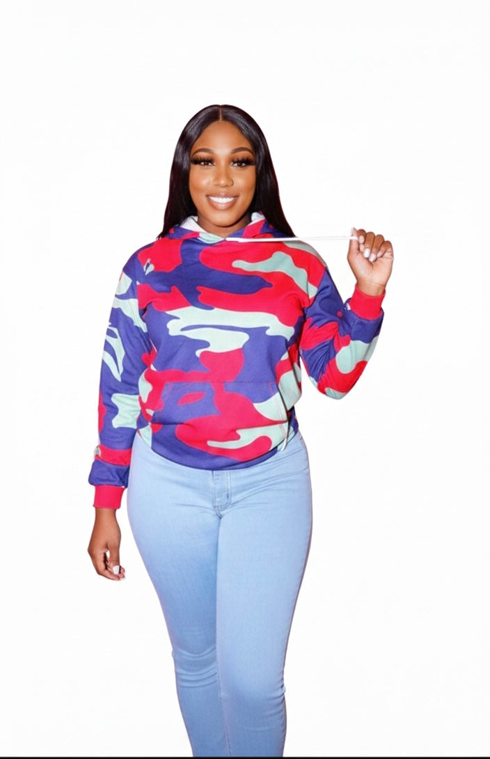 Hooded Colar Camo Print